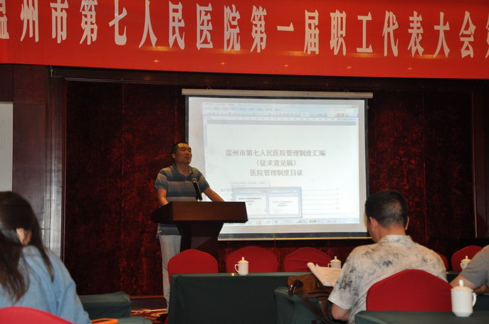 ???????? 院黨總支書記施肖峰致賀詞。他指出本次職代會,是在我院順利劃歸到衛(wèi)生系統(tǒng),逐步走上醫(yī)院的規(guī)范化管理,并在今年準(zhǔn)備創(chuàng)建三級乙等??漆t(yī)院的環(huán)境下召開的,是我院發(fā)展中的一件大事,也是我院廣大職工政治生活中的一件大事。我們作為溫州規(guī)模最大公立醫(yī)院的精衛(wèi)工作者,要承擔(dān)起歷史賦予的從高使命,充分展現(xiàn)主人翁風(fēng)采,把醫(yī)院做專做強,做實做精,努力實現(xiàn)質(zhì)量建院、人才立院、學(xué)科興院、科教強院、環(huán)境美院、文化塑院,為醫(yī)院的不斷發(fā)展建功立業(yè)。