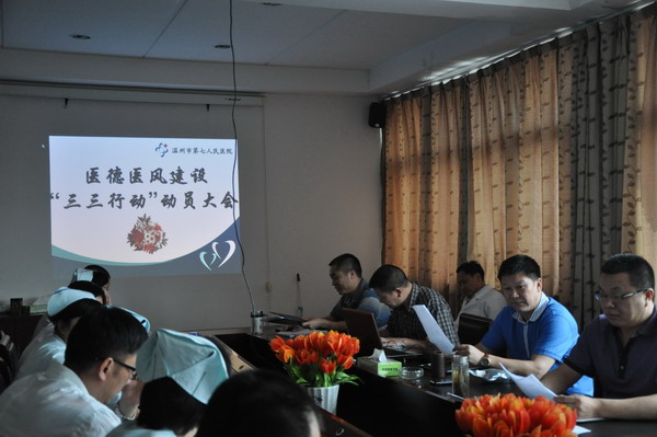 為進一步加強我院醫(yī)德醫(yī)風(fēng)建設(shè),深入開展“三好一滿意”活動,打造“情系百姓,滿意衛(wèi)生”的醫(yī)院服務(wù)品牌, 6月13日下午,我院召開醫(yī)德醫(yī)風(fēng)建設(shè)“三三行動”動員大會。會議由胡立榮院長主持,醫(yī)院領(lǐng)導(dǎo)班子成員、中層干部參加了會議。
