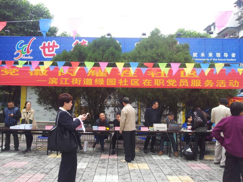 ? 七月份,我院黨總支開展“紅七月.服務(wù)月”系列活動。為使黨員志愿者活動常態(tài)化、延續(xù)化,八月底我院黨員志愿者紛紛到各社區(qū)報到,并認(rèn)領(lǐng)了志愿活動類型。11月14日,我院黨員志愿者周嚴(yán)燦、張曉丹、陳燁同志參加了濱江街道綠園社區(qū)組織的在職黨員進(jìn)社區(qū)義診、體檢服務(wù)活動。經(jīng)過兩個半小時的活動,三位同志為該社區(qū)的123位中老年人測量了血壓,并解答了老年人心理健康方面的問題。??????