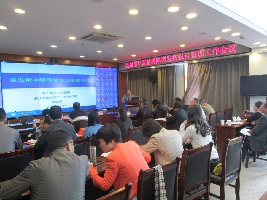 為進(jìn)一步規(guī)范精神衛(wèi)生服務(wù),貫徹落實(shí)國(guó)家衛(wèi)生計(jì)生委印發(fā)的《嚴(yán)重精神障礙發(fā)病報(bào)告管理辦法的通知》、《浙江省省嚴(yán)重精神障礙發(fā)病報(bào)告與信息管理實(shí)施意見(jiàn)(試行)通知》文件精神,11月14日,我市精衛(wèi)辦在疾控中心大樓會(huì)議室召開(kāi)精神障礙患者信息報(bào)告管理工作會(huì)議。各區(qū)(縣、市)衛(wèi)生局疾控監(jiān)督科負(fù)責(zé)人、精衛(wèi)辦工作人員、各級(jí)各類(lèi)有精神障礙診療資質(zhì)的精神衛(wèi)生專(zhuān)科、綜合醫(yī)療單位負(fù)責(zé)人約60多人參加會(huì)議。省衛(wèi)生廳疾控監(jiān)督處副處級(jí)調(diào)研員高露露、省精衛(wèi)辦副主任章健民出席培訓(xùn)會(huì)議。