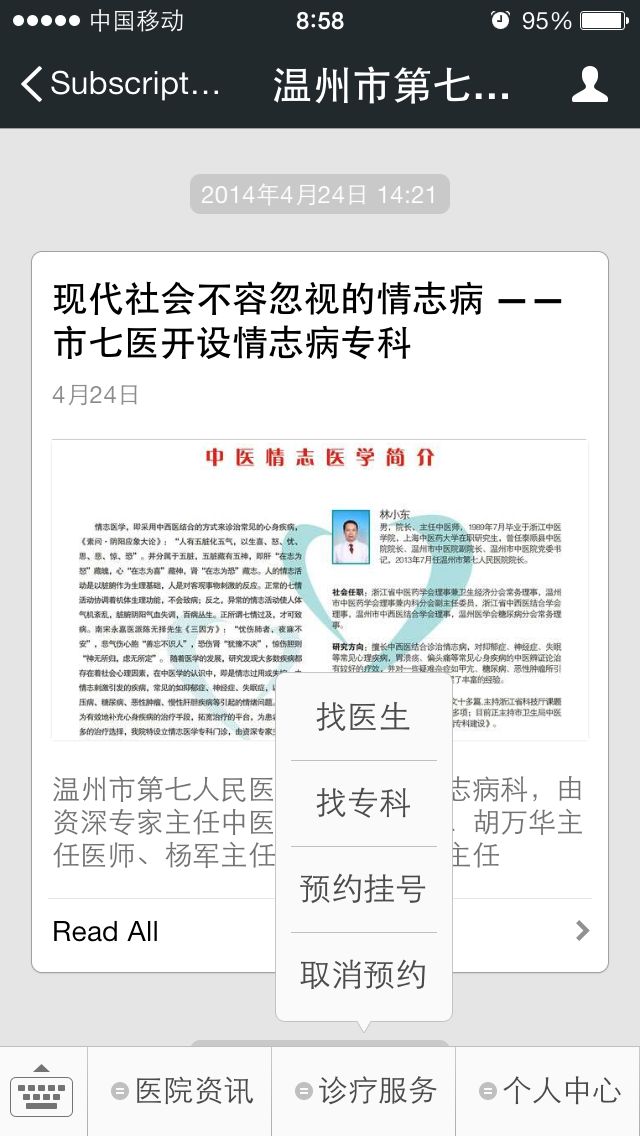 點擊“關(guān)注”,自動添加溫州市第七人民醫(yī)院微信平臺;