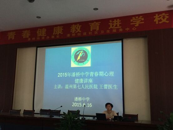 2015年6月16日下午,我院心理咨詢師王蕾受到潘橋街道辦事處和潘橋中學(xué)的聯(lián)合邀請,于潘橋中學(xué)階梯教室給400余名初一學(xué)生進(jìn)行了一場名為《為青春撐起保護(hù)傘》的青春期心理健康知識講座。在講座的過程中,王蕾咨詢師和該校學(xué)生和老師們一起分享了關(guān)于青春期性心理發(fā)展以及如何有效預(yù)防性侵害的話題。得到了學(xué)生和老師的積極參與和熱烈回應(yīng)。