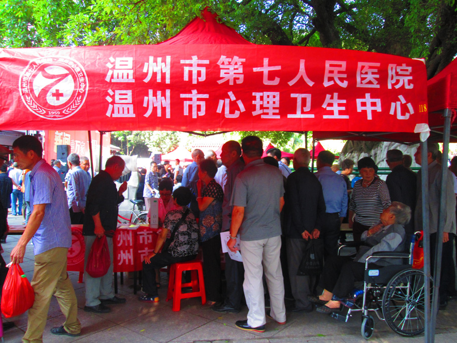 ???????? 我院積極響應由溫州市廣電傳媒集團和鹿城文明辦聯(lián)合主辦的“新聞惠萬家? 文明進社區(qū)”系列主題活動。9月27日,我院的洪滬津醫(yī)師、陳浩然醫(yī)師參加了“慶中秋,迎國慶”義診活動。由于市民對心理健康愈加重視,義診臺前排起了長龍,大家都在耐心等待體檢和咨詢心理健康及精神疾障的相關(guān)知識。林科長說:“我們的醫(yī)師們雖然犧牲了自己的休息時間,放棄中秋節(jié)陪伴家人的機會,忙得連喝口水的功夫都沒有,但內(nèi)心依然很高興,能夠服務更多的市民是件值得自豪的事?!碑斕炝x診順利圓滿完成,這也是我院關(guān)注市民心理健康、普及精神衛(wèi)生知識的意一項重要內(nèi)容。