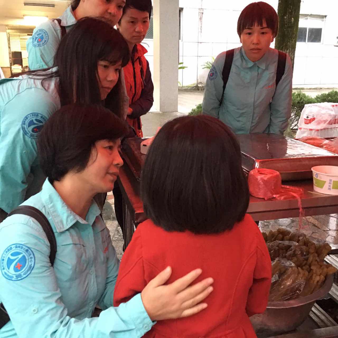 心理救援隊的隊員靜靜地走到這些親屬的身旁,輕輕的擁著她們,陪伴著他們,有些親屬已經(jīng)哭到無力,整個人就靠在隊員的身上,以獲得一份支持的力量。