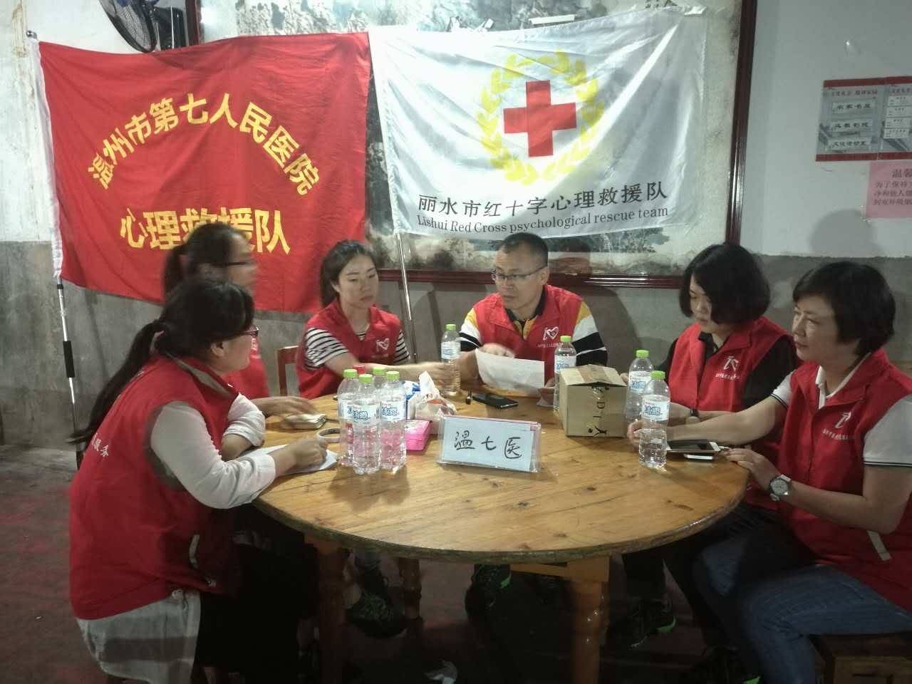 下午16:30,與麗水市心理援助隊(duì)在北界鎮(zhèn)災(zāi)民安置點(diǎn)順利匯合。在安置點(diǎn),我院心理救援隊(duì)受到了麗水市紅十字會(huì)黨組書記蔡成俊同志的熱誠(chéng)歡迎,他對(duì)我院心理救援隊(duì)成員放棄國(guó)慶休假趕赴麗水災(zāi)區(qū)開展心理危機(jī)干預(yù)工作表達(dá)了感激之情。隨后,我院心理救援隊(duì)成員與麗水市相關(guān)單位的心理救援工作人員進(jìn)行工作交接。