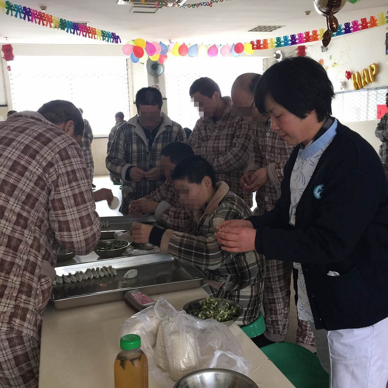 聯(lián)歡會(huì)上病人們共同參與的多彩節(jié)目讓平時(shí)沉悶的病區(qū)變得熱鬧非凡,病人們手舞足蹈,笑得合不攏嘴。聯(lián)歡會(huì)上,醫(yī)護(hù)人員為鼓勵(lì)病人,給病人們進(jìn)行了表彰,有年度勞動(dòng)獎(jiǎng)和“優(yōu)秀病友”稱號(hào),現(xiàn)場(chǎng)還抽取幸運(yùn)病友,贈(zèng)送了精挑細(xì)選的春節(jié)禮物。之后,病區(qū)組織了包餃子活動(dòng),病人們共同參與.在歡笑聲中醫(yī)護(hù)人員和病人們一起挑餡、掐餃子邊。