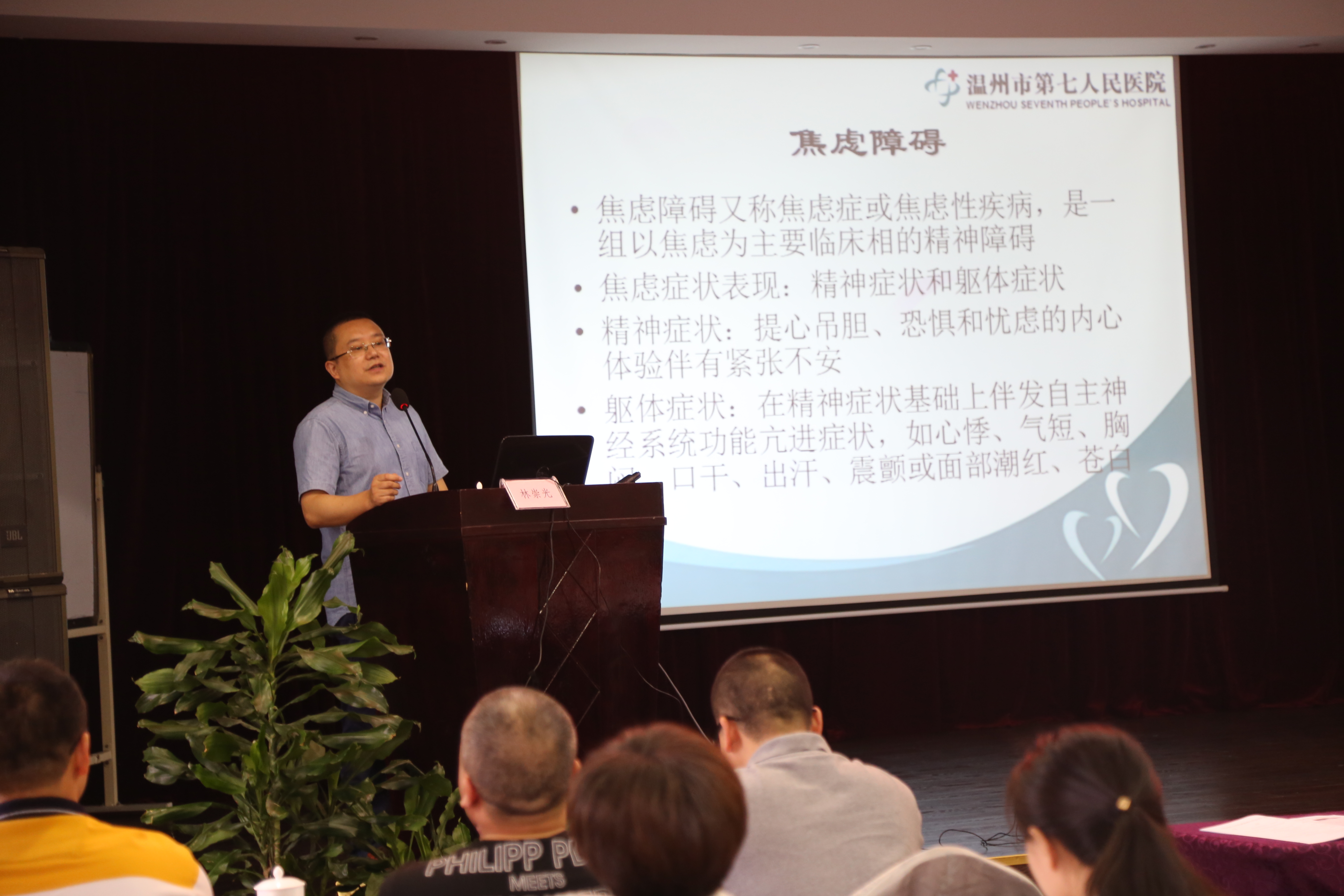 ? ? ?另外,浙江省康復醫(yī)學會精神康復專業(yè)委員會委員鄭維芳、溫州市康復醫(yī)學會精神康復委員張偉、以及溫州市健康教育協(xié)會學校心理健康教育專業(yè)委員會委員陳策就當下焦慮抑郁疾病的屬性以及在家庭環(huán)境、青少年各期的表現(xiàn)形態(tài)、治療特點和運動處方與常規(guī)治療結合方案等為在場學員做了詳細的講解,大家都表示受益匪淺。