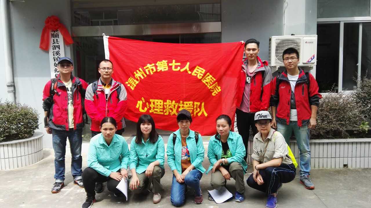 ? ? ??受強臺風(fēng)“莫蘭蒂”影響,泰順縣遭遇了強降雨,受災(zāi)嚴(yán)重,為及時有效的干預(yù)減輕災(zāi)民的應(yīng)激心理反應(yīng),對于親歷者、救援者進行心理干預(yù),緩解心理壓力,幫助他們振奮精神,重建家園,9月20日一早,溫州市第七人民醫(yī)院派出由醫(yī)生、心理咨詢師、護士組成的心理危機救援隊,趕赴泰順縣受災(zāi)嚴(yán)重的泗溪鎮(zhèn)。