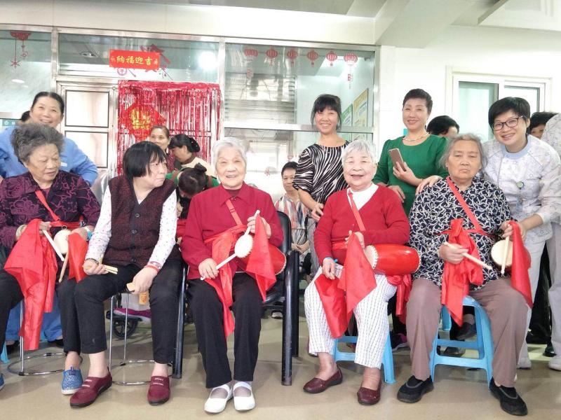 ? ? ? 老人的學習熱情高漲,積極參與鍛煉,提高機體能力。雖然動作不是很到位,但是看他們認真學習的模樣讓我不禁回想起我們小學學廣播操的那一幕。雖然好多早已過了花甲之年進入耄耋之年,一條條深陷的皺紋在他們臉上留下歲月的痕跡。但此刻的他們就像孩童般一樣純真簡單。每日,他們在這做早操、欣賞音樂、學習唱歌、學習折紙、繪畫、練毛筆字……這一幕幕的生活寫照為康復室增添了不少色彩。