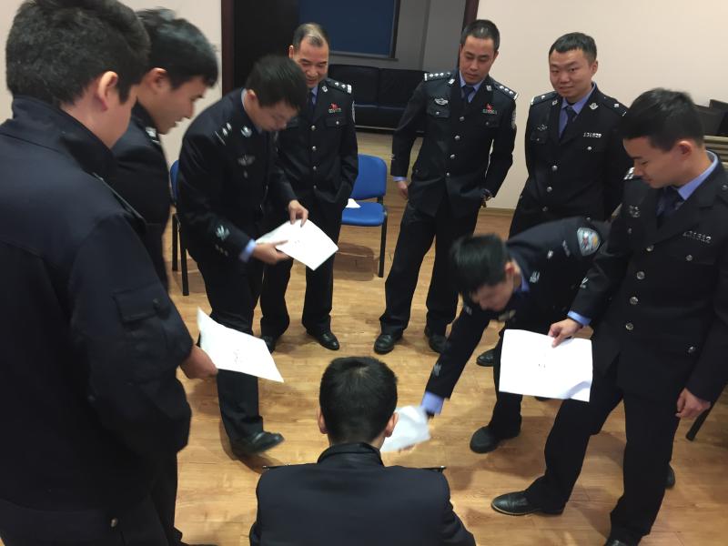 本次活動讓民警同志們以游戲的形式參與進來,在豐富多彩的游戲當中,直面壓力,找到紓解的方法。游戲包括“進化論游戲”、“雨中人”、“戰(zhàn)地密碼”、“迷失太平洋”等?!斑M化論游戲”是了解自身壓力的第一步,大家都要各自分享自己面對挫折時的放映和應對措施;“雨中人”和“迷失太平洋”是通過冥想的方式,畫出心中所想的畫面,通過潛意識層面的反應,讓大家了解到目前自身壓力的大小以及是否存在有效的抗壓途徑;“戰(zhàn)地密碼”是團隊游戲,在游戲中讓大家體會到團隊協(xié)作、分享、互助的意義。