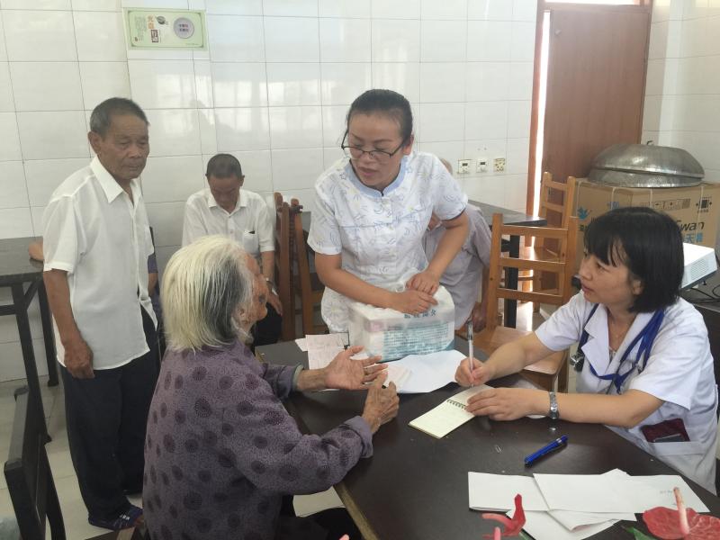 在當(dāng)天的看診過(guò)程中,有一位60多歲老年患者,他的血壓達(dá)到204/120mmHg,卻沒(méi)有定期定時(shí)服務(wù)降壓藥。在得知自己血壓很高時(shí),老人說(shuō):“我早上剛喝了酒。這酒我也戒不掉!”“為了你的身體著想,最好還是不要喝酒啦!”義診的醫(yī)護(hù)人員耐心地解釋并看診,并陪伴他進(jìn)行心電圖和血糖測(cè)試。最后,由老年科于明榮主任醫(yī)師為其詳細(xì)診斷,向其再次宣教長(zhǎng)期過(guò)量飲酒的危險(xiǎn)性,以及叮囑服用降壓藥的必要性。“樓上還有兩個(gè)老人,麻煩給他們測(cè)一測(cè)血糖,我們好注意他倆的飲食?!痹诰蠢显涸洪L(zhǎng)的帶領(lǐng)下,醫(yī)護(hù)人員對(duì)兩名長(zhǎng)期臥床,生活不能自理的老人進(jìn)行了詳細(xì)看診。