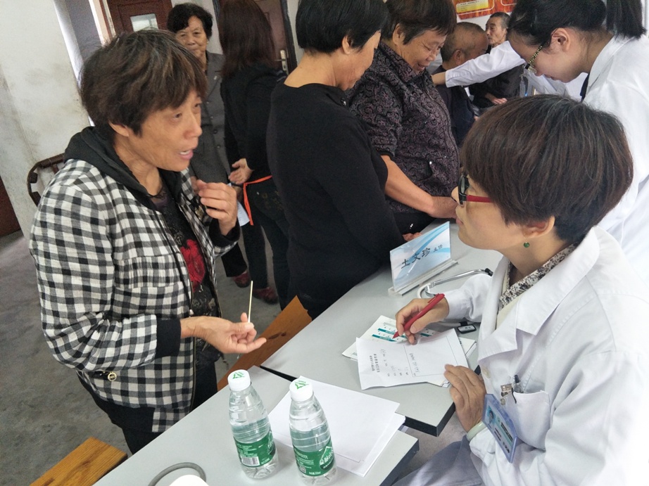 ??? 一到現(xiàn)場,老人們早已坐好等著我們的到來,護士們馬上開始布置現(xiàn)場,掛起橫幅,準備用物。義診開始了,護士們?yōu)槔先藴y量血壓和血糖,為他們檢查身體狀況;土文珍詳細詢問老人們的身體,耐心的分析著病情,提出建議并且講解衛(wèi)生保健知識以及合理用藥等知識。其中許多老人有腰腿疼痛等方面問題的,護士長陳艷特地為老人們準備了艾灸,這種治療有溫經(jīng)止痛等功效,適用于關(guān)節(jié)疼痛,肌肉酸麻的人群,因此老人們都排隊等著。