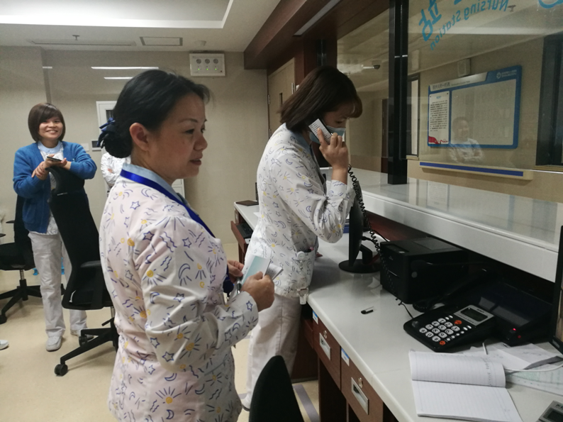 ??? 10月29日下午,護(hù)理部主任方春霞對潘橋院區(qū)各病區(qū)進(jìn)行安全質(zhì)量追蹤檢查,本次重點(diǎn)檢查內(nèi)容為:如何使用一鍵式報(bào)警、護(hù)工技能培訓(xùn)落實(shí)情況、各科重點(diǎn)病人每日巡查落實(shí)情況等。