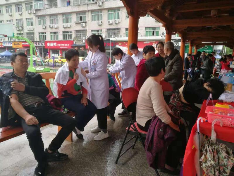 ?? ? ??本次義診活動(dòng)在上午9點(diǎn)準(zhǔn)時(shí)開始,雖然天公不作美,一直淅淅瀝瀝地下著小雨,但前來居民卻是絡(luò)繹不絕。許彬彬醫(yī)師首先運(yùn)用嫻熟的中醫(yī)診脈技術(shù)為居民群眾進(jìn)行體質(zhì)辨識(shí)及臟腑功能評(píng)價(jià),并借助針灸理論為居民群眾講解了諸多頸肩腰腿痛病的日常保健、鍛煉方法及注意事項(xiàng)。然后再根據(jù)居民的具體癥狀分別針對(duì)性地選擇針灸,艾灸以及推拿治療,而陳怡治療師則輔助許彬彬醫(yī)師為有需要的居民進(jìn)行了推拿治療。兩位醫(yī)師還向廣大居民群眾普及中醫(yī)預(yù)防保健知識(shí),以及冬病夏治、冬令進(jìn)補(bǔ)等中醫(yī)特色項(xiàng)目。