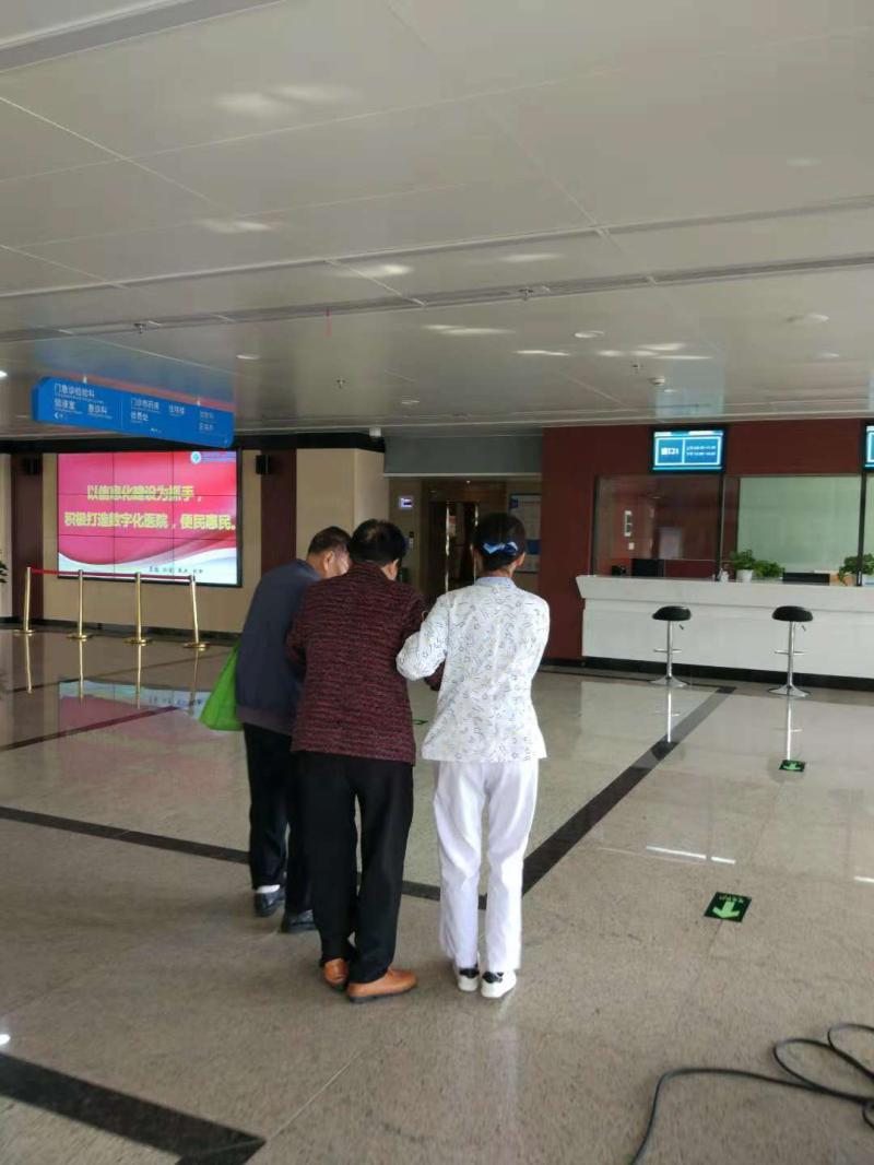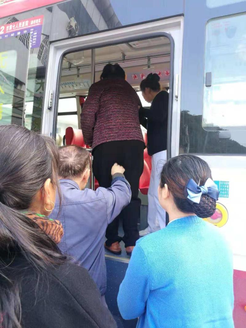 ? ? ? 記得第一次見到這對夫婦的時候,是陰雨天氣,老奶奶不穩(wěn)的步伐,引起了導(dǎo)醫(yī)的注意,生怕老人家滑倒立即上前去幫忙攙扶,經(jīng)打聽才知道他們要去潘橋院區(qū)看望住院的兒子。他們早上6:00起床出發(fā),經(jīng)轉(zhuǎn)車先到西山院區(qū),再坐42路公交車去潘橋院區(qū)。他們每天準時7:30左右到我們西山院區(qū)趕9:00的公交去潘橋,在這期間,導(dǎo)醫(yī)們都會很好的安排他們,不是送開水,就是扶老奶奶上廁所,并安全護送他們上公交,還要聯(lián)系潘橋的門診導(dǎo)醫(yī)做好交接。