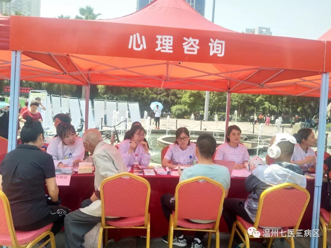 ??? 我院的四位志愿者黃佳佳、林曉曙、張夙兮、陳曼在護理部方春霞主任的領(lǐng)導(dǎo)下早早來到活動現(xiàn)場,布置會場,為排隊等待的市民提供心理咨詢。