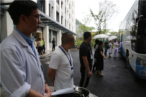 還有,住院大樓門口,護士們逐一核對病人人數(shù),并以10個人為小單位,清點核對人員,確保病人如數(shù)安全入駐病房。
