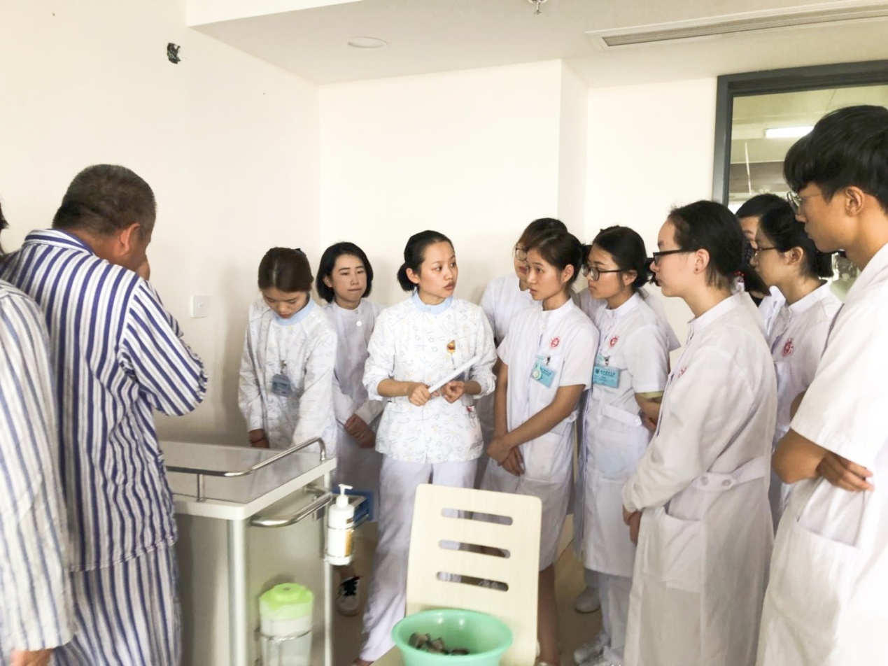? ? ? 為消除學(xué)生們的恐懼心理,帶教老師通過(guò)深入淺出的入科教育,帶領(lǐng)護(hù)生參觀科室布局、病房環(huán)境,觀摩護(hù)士給患者發(fā)藥的流程,對(duì)各項(xiàng)規(guī)章制度及各班工作流程進(jìn)行詳細(xì)講解。