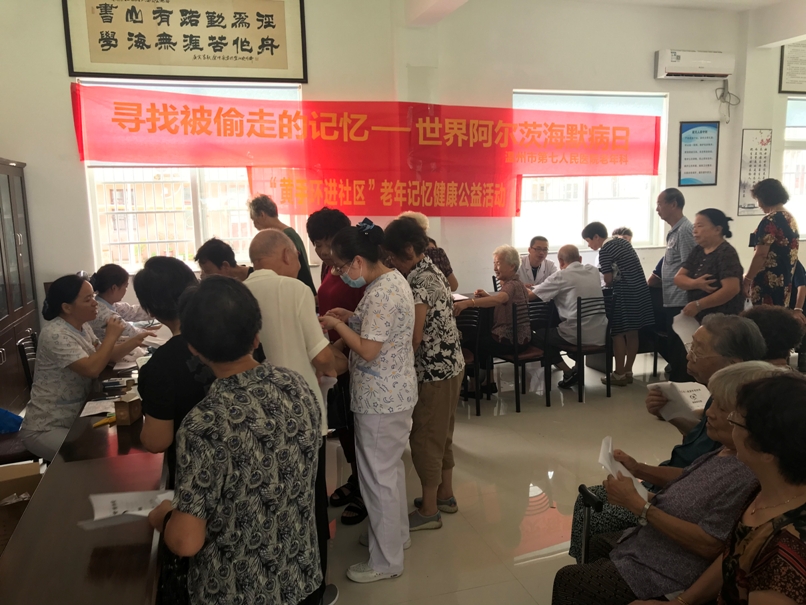 ? ? ? 踏著秋風(fēng)帶著一朝氣勃勃的晨曦,溫州第七人民醫(yī)院老年科組建的老年“護(hù)衛(wèi)隊(duì)”來(lái)到了平陽(yáng)鰲江鎮(zhèn)水深村的衛(wèi)生社區(qū)中心。9月18日八點(diǎn)半整,我們老年科陳光東副主任與各位醫(yī)生們滿(mǎn)臉微笑、熱情細(xì)致的為老人們?cè)敿?xì)解答:改變不良生活習(xí)慣,早期預(yù)防老年癡呆的基本知識(shí),讓更多老人了解癡呆,正視癡呆,不讓“老小孩”們腦海中的“橡皮擦”擦去那美好而又寶貴回憶。而護(hù)士及心理咨詢(xún)師們分別為老人帶去測(cè)量血壓、血糖、艾灸貼、智力篩查等“暖人心”的檢查,本次共服務(wù)了80余名老人,為他們送去了環(huán)保手袋,安心手環(huán)及一些藥品。?