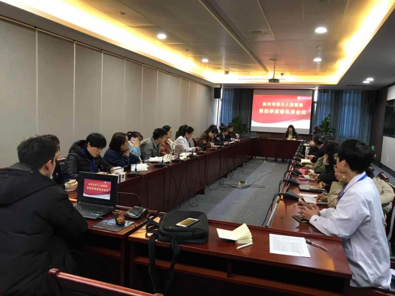 ??? 1月22日下午,我院2018年度第四季度通訊員會議在門診樓四樓一號會議室召開,會議由院長助理兼辦公室主任陳春棉主持。
