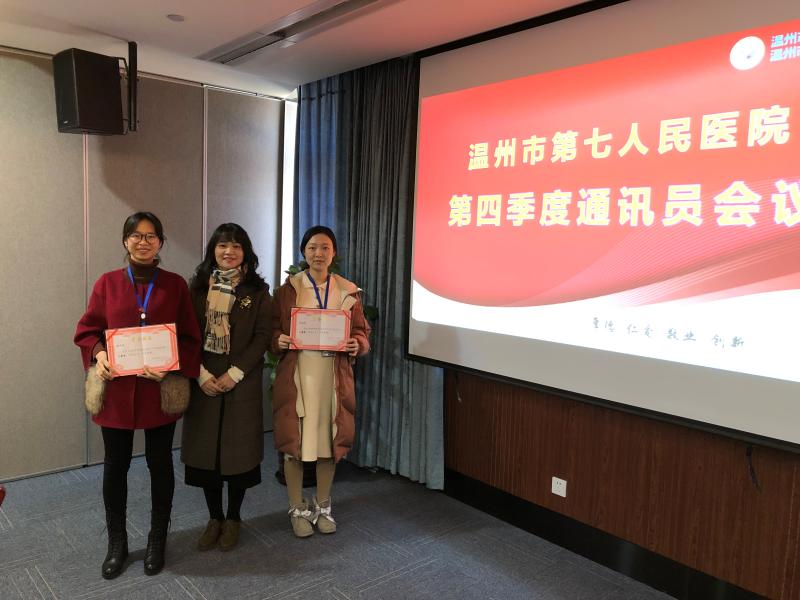 ??? 會議通報了我院各科室、病區(qū)2018年度新聞宣傳信息報送情況,全年院辦共收到各科室、病區(qū)報送信息983條,醫(yī)院門戶網(wǎng)站(外網(wǎng))共采用信息236條、內(nèi)網(wǎng)共采用信息764條。其中被國家級刊物:《健康報》、《中國人口報》、《新華網(wǎng)》、《人民日報海外網(wǎng)》錄用13篇;被省級媒體刊物:《健康浙江》、《浙江新聞》錄用18篇;被市級媒體:《溫州晚報》、《溫州都市報》、《溫州日報》共錄用131篇;被市衛(wèi)計委網(wǎng)站、《健康溫州》公眾號、《健康溫州報》采用信息65條。最后,陳春棉對2018年度宣傳先進(jìn)科室、先進(jìn)病區(qū)和先進(jìn)個人三個獎項進(jìn)行了頒獎。
