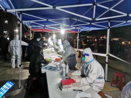 2022年1月29日上午,因杭州市1名新冠初篩陽性感染者1月26日乘坐動車前往溫州平陽參加婚禮,溫州迅速啟動了防疫應(yīng)急措施。市級各大醫(yī)院迅速抽調(diào)人員集結(jié)平陽進行核酸檢測,市七醫(yī)此次應(yīng)要求召集50人,結(jié)果去了51人,多出的1人是因為機動隊的一名隊員輪休在家,距離有點遠,怕趕不及,再叫了一名后備人員,結(jié)果那名隊員還是盡全力趕到了,隊員們在此次集結(jié)任務(wù)中充分體現(xiàn)出了召必來、戰(zhàn)必勝的精神。第一批隊員在平陽穿著防護服連續(xù)工作7小時,采集了近萬人的核酸樣本,在1月29日晚上十一點圓滿完成了任務(wù)。