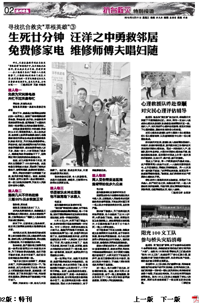 | 晚報訊 強臺風“莫蘭蒂”雖已過去,卻給部分災民留下不愿回想的記憶。昨天,我市一支由9人組成的心理危機救援隊赴泰順縣泗溪鎮(zhèn)的災區(qū)一線,走村入戶,對災民進行心理評估和輔導,幫助災民卸下心里的重擔,重拾對生活的信心和希望。 這支心理危機救援隊由市七醫(yī)的3名心理醫(yī)生和5名心理咨詢師,以及鹿城疾控中心的一名心理醫(yī)生組成。 昨天到達災區(qū)后,救援隊深入泗溪鎮(zhèn)的西溪村、半溪村、積庫村等安置點,首先展開的工作是評估災后當?shù)卮迕竦男睦頎顟B(tài)。經過一天的走村入戶,救援隊展開專業(yè)評估,大部分村民的心理狀態(tài)不錯,能夠積極實施自救,但在部分村民身上仍有一些災后的應激癥狀,比如口干、嗓子啞、睡不安穩(wěn)等。 經過上門評估,有一戶家庭被列為重點對象。這戶家庭有兩人狀態(tài)不太好,一人始終沉溺在悲傷中,止不住地哭泣,情緒反應特別激烈。另一人災后卻一直沉默不說話,“這種情況更危險,甚至沒有一條宣泄情緒的通道?!标惒哒f,他們將保持對這戶家庭的心理危機干預。 帶隊的市七醫(yī)醫(yī)務科科長陳策說,在經歷了失去親人、財產的打擊之后,如果處理不好,一些人會得創(chuàng)傷后應激障礙,不斷閃回,即反復回到災難發(fā)生時的場面,出現(xiàn)情緒性反應,難以入睡等。 | |