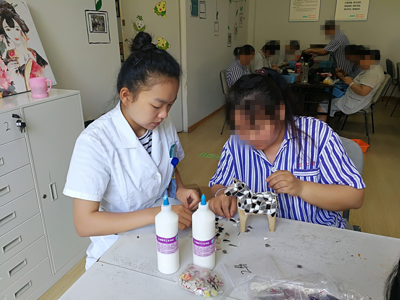 或許,這樣的成功對(duì)于其他人來說微不足道,但她卻說“畫畫能體現(xiàn)自己的價(jià)值,找到自己存活的意義”。醫(yī)護(hù)人員“夢夢老師”因外出學(xué)習(xí)不能來上班時(shí),她總是一遍又一遍地詢問“夢夢老師”何時(shí)才能回來,似乎是在期待醫(yī)護(hù)人員的學(xué)習(xí)歸來能給她帶來更新奇的手工制作。