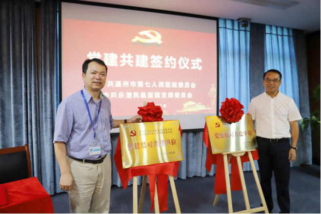 7月14日,在溫州市精神醫(yī)學(xué)專科聯(lián)盟工作例會(huì)上,中共溫州市第七人民醫(yī)院委員會(huì)與中共樂清鳳凰醫(yī)院支部委員會(huì),舉行黨建共建結(jié)對(duì)簽約儀式。這標(biāo)志著溫州精神專科聯(lián)盟黨建+精神醫(yī)學(xué)共建新平臺(tái)的正式誕生。