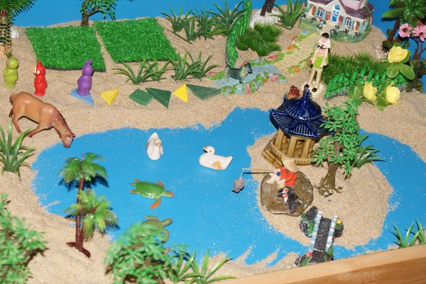 方法:首先要有一間專門用來進行箱庭的房間,里面放置著沙盤、人或物的沙具以及水罐或其他盛水器具等箱庭療法的必需物品。水罐的作用是裝一些水,放在沙盤旁邊隨手可得的地方,以備需要將沙弄濕時用。人或物的沙具則是一些能代表人、動物、植物或其他類似的沙具。沙具的種類應該比較豐富,能盡量滿足來訪者的各種需求,比如能代表各種文化,無論是東方文明、西方文明,還是歷史人物、當今潮流,都應該有相應的模型能給予表現(xiàn),甚至是一些史前文化的物品、想象中的動物等等。另外,海陸空的各種交通工具也應包括在內。