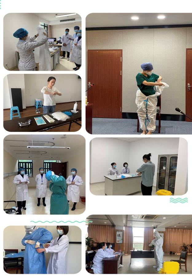 為進一步強化醫(yī)護人員醫(yī)院感染疫情防控意識,全面提升醫(yī)務人員防護用品穿脫能力及水平;根據(jù)省市衛(wèi)健委關于現(xiàn)階段抗疫工作布置及要求,結合我院實際,感管科制定了詳盡的培訓考核方案,于2020年4月24日-28日分別在西山院區(qū)、港務院區(qū)、潘橋院區(qū)會議室舉辦了穿脫防護服培訓演示,同時還深入醫(yī)院重點科室、重點部門進行防護服穿脫現(xiàn)場培訓及細節(jié)指導,并與現(xiàn)場醫(yī)護人員積極互動,答疑解惑。5月5日聯(lián)合護理部對全院所有臨床一線病區(qū)及科室進行了培訓考核。