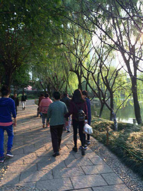 ????當(dāng)日下午1點(diǎn)半,康復(fù)患者在志愿者“一對(duì)一”的帶領(lǐng)下,乘坐院車,經(jīng)過人民路來到了大南門沃爾瑪超市,在20分鐘的車程里,個(gè)別患者逐個(gè)說出了在記憶中的路名,并表達(dá)了對(duì)新老溫州城的不同感受。在超市里,6名患者根據(jù)自己的需求及規(guī)定的金額進(jìn)行了自由選購,并獨(dú)自結(jié)算,完成一次購物、理財(cái)?shù)哪芰τ?xùn)練。提著各自買好的物品,患者們沿著大南路步行前往馬鞍池公園。當(dāng)途經(jīng)溫州世貿(mào)中心,看著浙南最高的大廈及熙熙攘攘的人群,患者們感慨萬分。到了馬鞍池公園,湖邊楊柳依依,把“江南水鄉(xiāng)”的寧靜和柔美體現(xiàn)的淋漓盡致。坐在休息亭內(nèi),沐浴在溫暖的陽光中,大家邊聊邊吃,共同領(lǐng)略公園的景色。