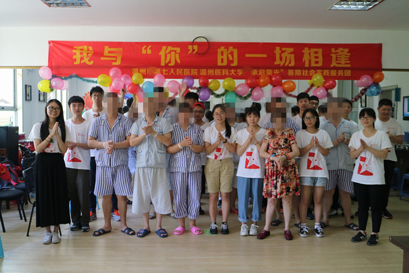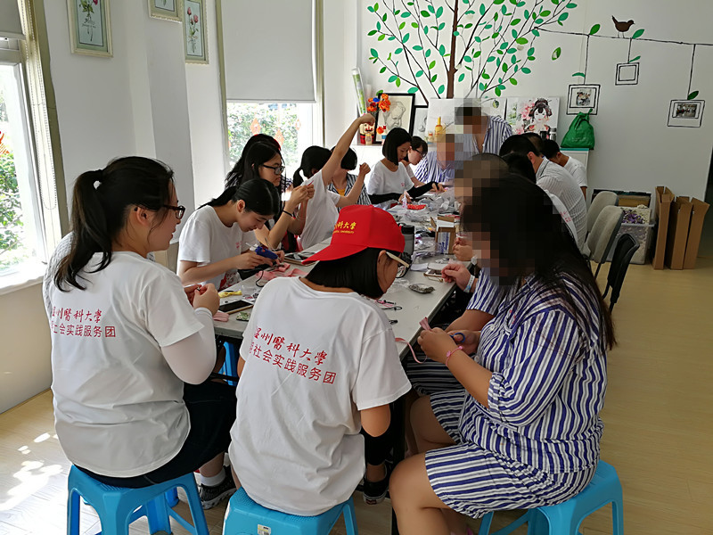“回來(lái)啦,他們回來(lái)啦。”還沒(méi)入門(mén),予希就感受到了康復(fù)員們滿心的歡喜,洗菜,擺桌子、開(kāi)火、切菜,大家有條不紊地大展拳腳,那種的忙而不亂,像是優(yōu)雅的華爾茲,一來(lái)一往之間每一次都剛好踏在了節(jié)拍上。咸菜燜雞、蟹味蛋、黃燜鯉魚(yú),百家千宴中充斥著來(lái)自各個(gè)地域味道,浙南與浙北,江南與華北,每一個(gè)人都希望在這有限的時(shí)間里,給對(duì)方帶來(lái)歡樂(lè)。有康復(fù)員對(duì)予希說(shuō):“你們真的很厲害,今天真的很謝謝你們?!边@樣的話,康復(fù)員們反反復(fù)復(fù)拉著予希和其他的實(shí)踐隊(duì)小伙伴傳遞著,“你們開(kāi)心我們就很高興了?!睂?shí)踐隊(duì)員如是說(shuō)。這一刻,兩心知,雙方的情感通過(guò)指尖流淌。對(duì)待病人,心理上要給予他們足夠的關(guān)懷和尊重。這是予希內(nèi)心深處的感受。