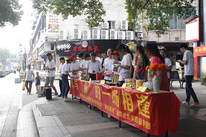 ?隨著溫度的慢慢升高,雞肉正在醞釀著香味的誕生,蒜薹、花椒、酸菜,它們自身的味道慢慢地包裹住所有的雞肉,肉汁一點(diǎn)一點(diǎn)地滲出,肉質(zhì)逐漸變得緊實(shí)彈牙,誘人的香味在空氣中跳動(dòng)著……這讓人會(huì)誤以為進(jìn)入了某檔美食節(jié)目的錄制現(xiàn)場(chǎng),而事實(shí)是予希和其他暑期實(shí)踐活動(dòng)的伙伴們以及市七醫(yī)的康復(fù)員們共同完成的美味佳宴。在溫州太陽(yáng)熾熱地幾乎融化了馬路的正午,予希和實(shí)踐隊(duì)伙伴們帶著市七醫(yī)康復(fù)員們滿滿的期待前往菜市場(chǎng)選購(gòu)烹飪需要的食材。在反復(fù)比價(jià)、認(rèn)真挑選之后,每一個(gè)人的手里都拎著沉甸甸的的食材滿載而歸。