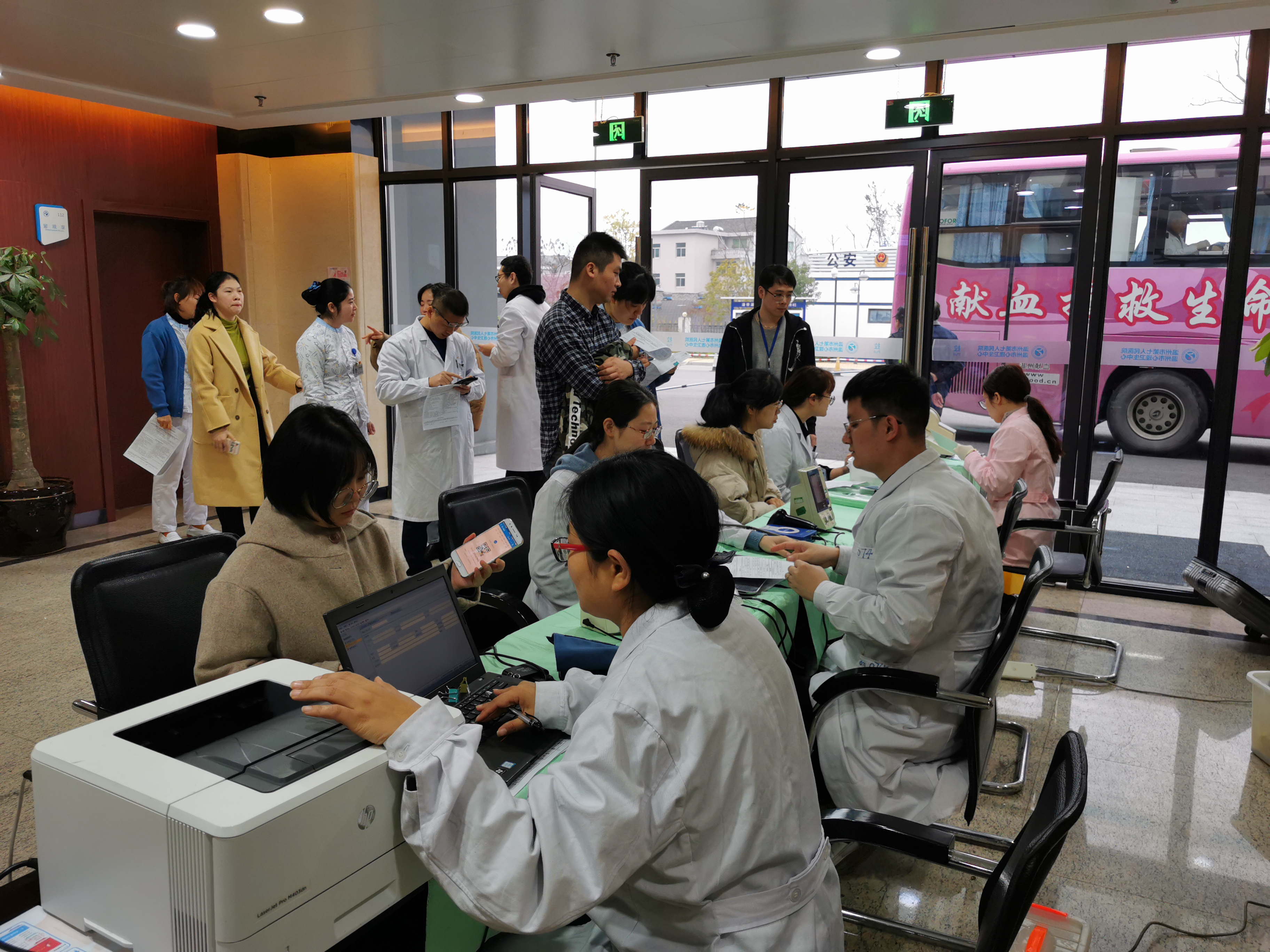 今天上午,兩輛來(lái)自溫州市中心血站的無(wú)償獻(xiàn)血車緩緩地駛?cè)肱藰颉⑽魃絻蓚€(gè)院區(qū),70多名醫(yī)務(wù)工作者伸出愛(ài)的臂膀,來(lái)到門(mén)診大廳的“愛(ài)心加油站”旁,用滾燙的愛(ài)心捂熱了這寒冷的冬季。