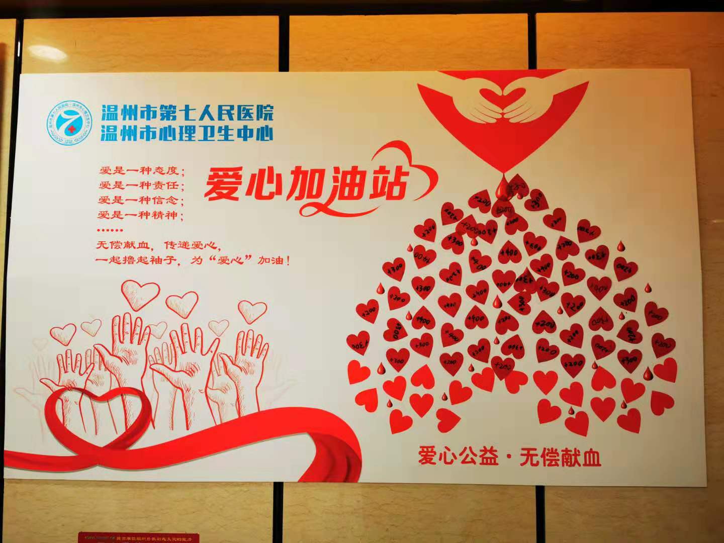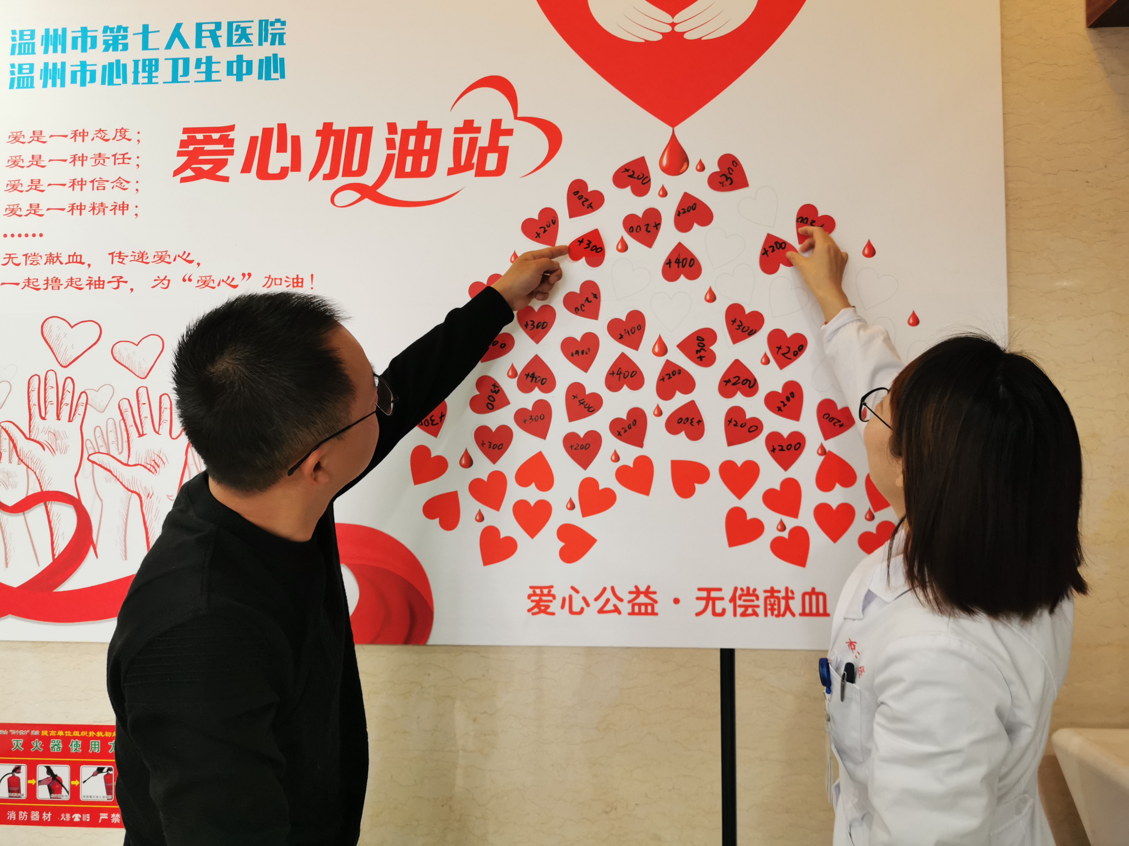 “愛(ài)心加油站”宣傳牌上,一行行溫情的文字,一雙雙高舉的愛(ài)心手臂,與宣傳牌下一名名捋袖獻(xiàn)血的醫(yī)務(wù)工作人員眼神堅(jiān)定和火熱的獻(xiàn)血場(chǎng)景遙相呼應(yīng)。每完成一次采血,志愿者就把自己的愛(ài)心貼上“加油站”。一整個(gè)上午,“愛(ài)心加油站”的里的愛(ài)心越加越滿,紅色的愛(ài)心相映著醫(yī)務(wù)工作者的笑臉,讓這個(gè)原本冰冷的急診大廳變得暖意融融。