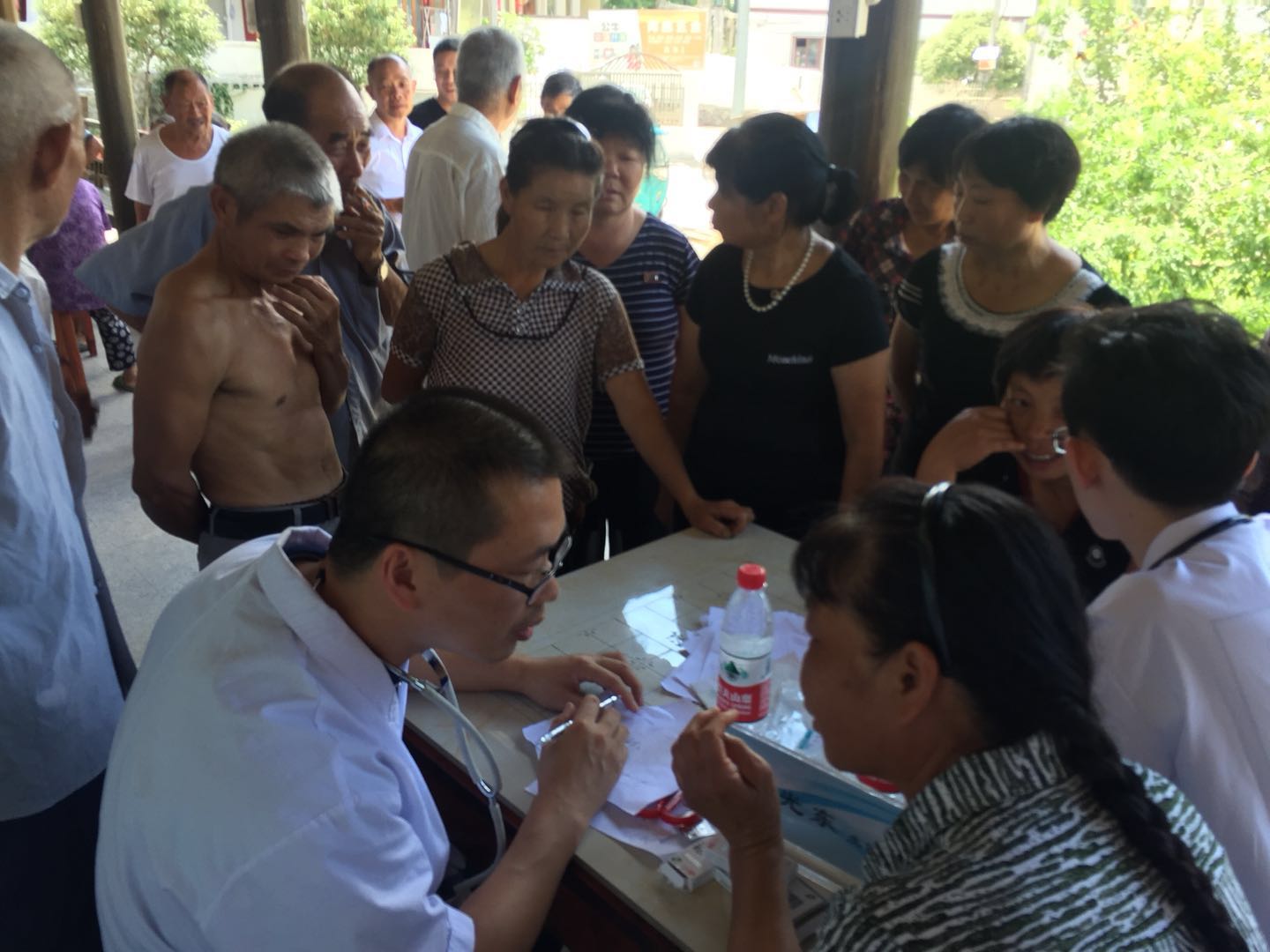 ???? 上午八點三十許,坦下村老年們到服務(wù)中心前來咨詢的老人表示已等候多時,老年科陳光東主任與王醫(yī)生立馬為老人進行篩查、診斷,詳細的問診,徐洋醫(yī)生詳細給予篩查,根據(jù)老年人的狀態(tài)給予發(fā)放“安心手環(huán)”,并交代領(lǐng)取的流程,并囑咐使用注意事項,每人都忙個不停。除此之外,所有老人還能免費量血壓、測血糖,排除“安全隱患”。“新家庭計劃---養(yǎng)老照護”的行動,持續(xù)了3個多小時,共服務(wù)了140多位老人,晌午的時候老人們才陸續(xù)離開。在這百來位老人中,醫(yī)護人員為其中十余位失智老人發(fā)放了安心手環(huán),為多位老人做了量表的篩查,降低了走失的風(fēng)險,減少不健康情緒帶來的危害。