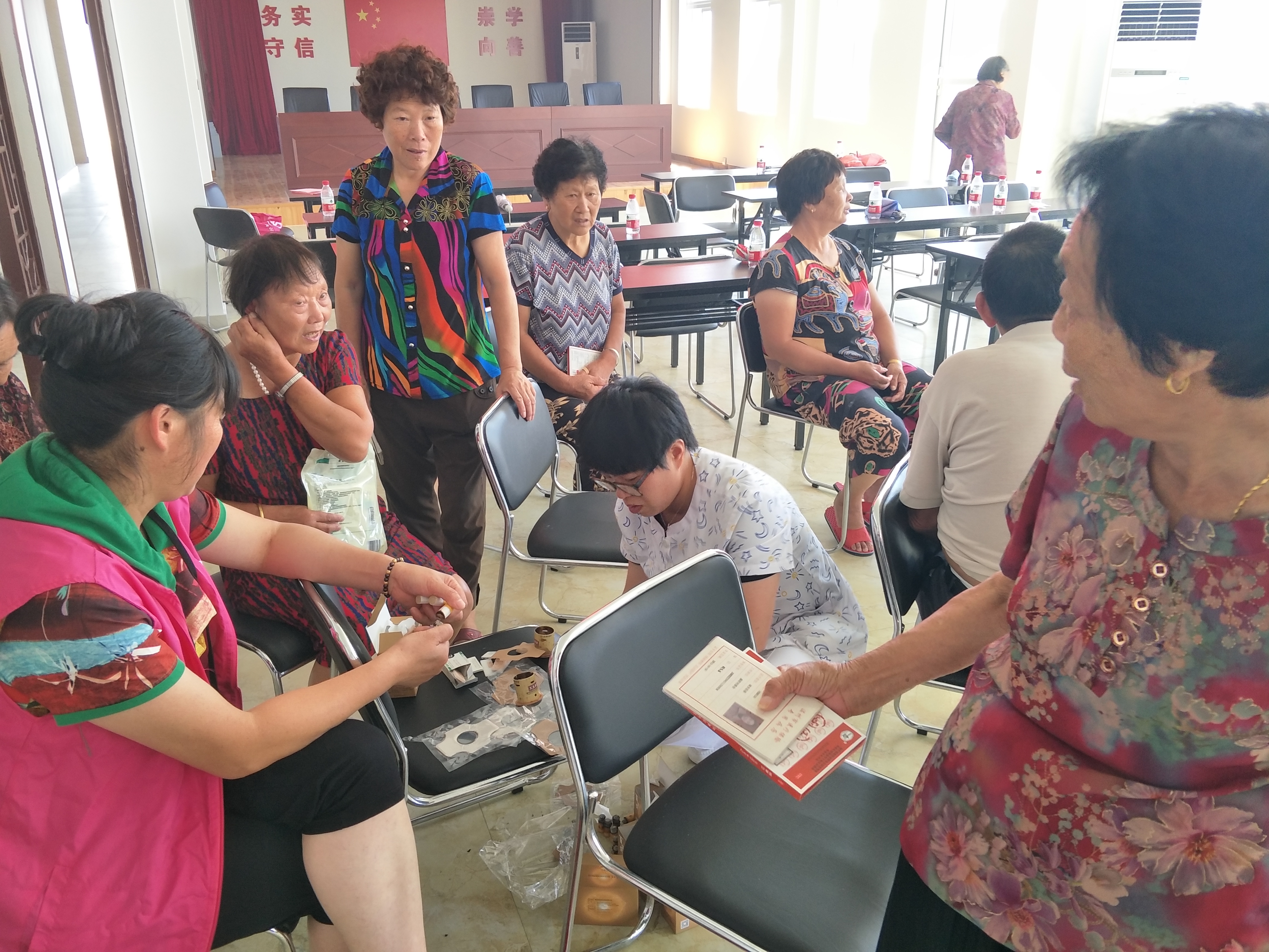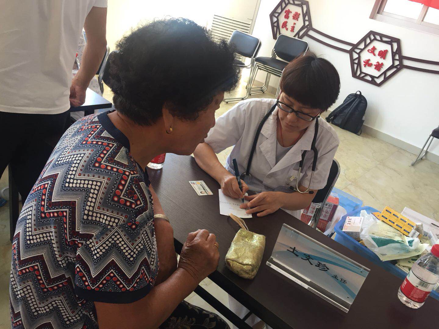 ???10點整,義診活動準時開始。拿著排隊號碼的老人們等著叫號,次序的排起隊來,跟隨我們一起義診的是我們老年科的土文珍主任,當?shù)卮迕裼惺裁磫栴}去咨詢主任,她都細心的給他們講解,耐心的回答大家提出的問題,并且做了些簡單的篩查,以及免費分發(fā)藥品。量血壓測血糖的護士們非常認真負責,做到準確測量,并且囑托那些血壓偏高的阿婆阿公們注意飲食及睡眠,避免食用可能造成血壓升高的食物。遇到高血壓人群,比較容易緊張,護士會用專業(yè)知識讓他們了解病情,給予最溫暖的安慰,讓他們不要擔心。老年科的陳艷護士長給很多腰腿酸痛的老人們帶來了艾灸,并且起到了很好的作用,不少老人表示緩解了酸痛感,阿長還和老人們聊天,氣氛十分融洽。