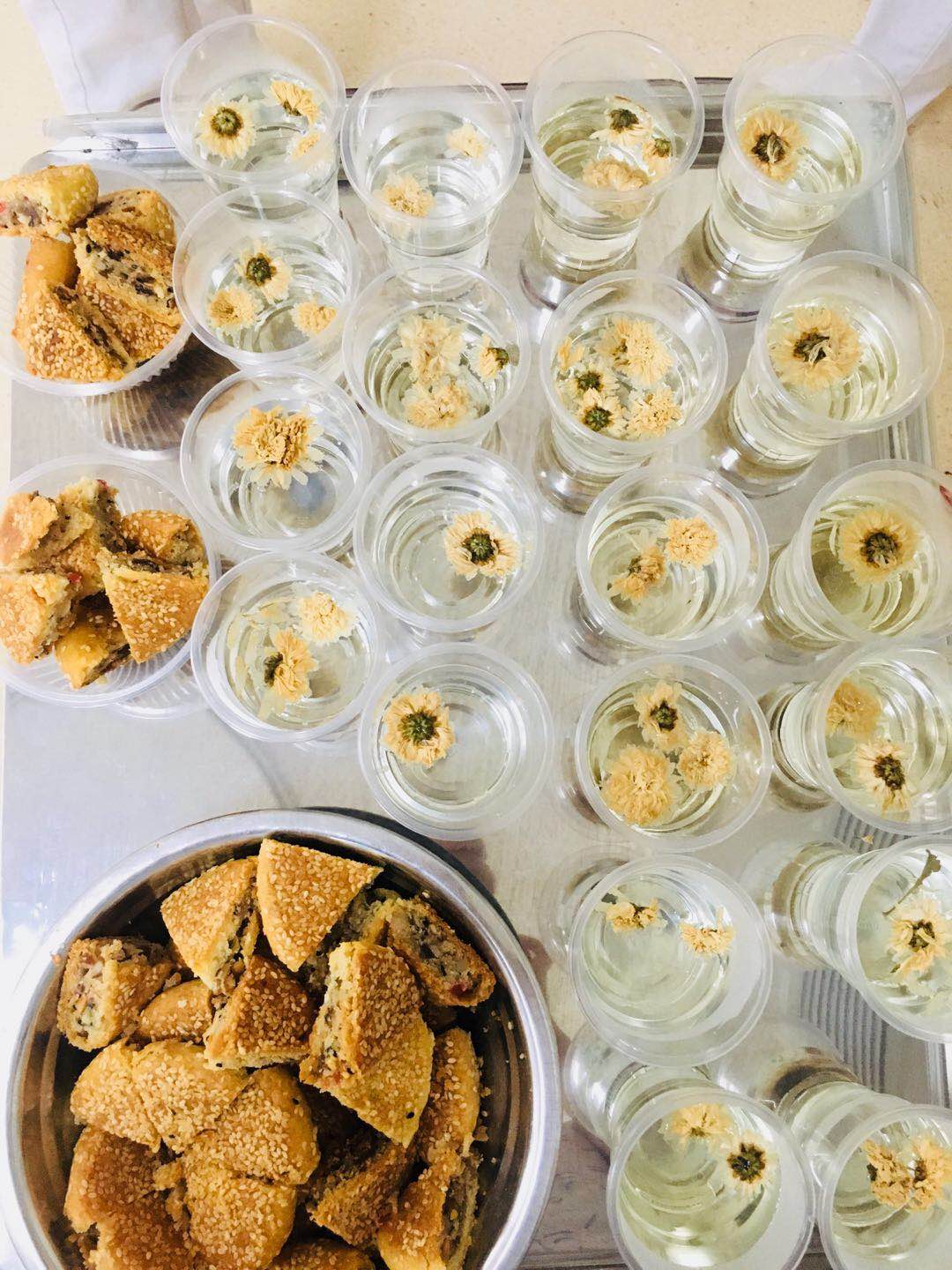 ??活動(dòng)仍在繼續(xù),接下來(lái)有擊鼓傳花的游戲,傳到誰(shuí)就表演一個(gè)節(jié)目。他們認(rèn)真的玩著游戲,用心的表演。我們?yōu)樗麄儨?zhǔn)備了菊花茶和月餅,大家一起分享著這個(gè)美好的時(shí)光。