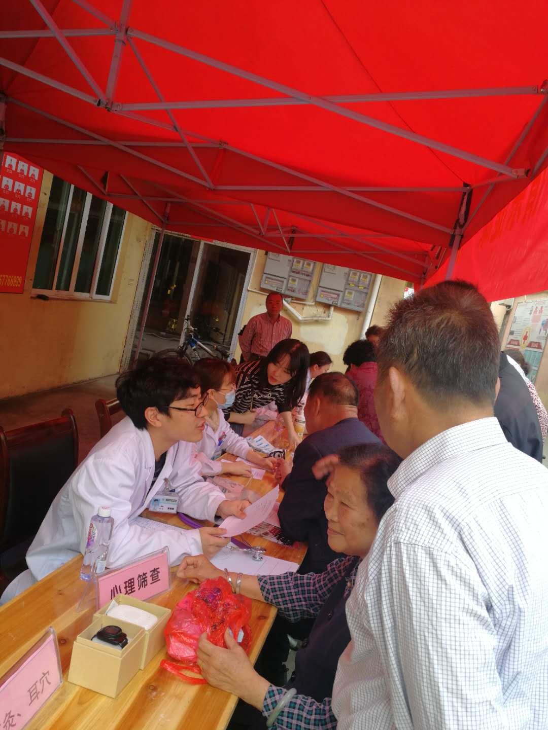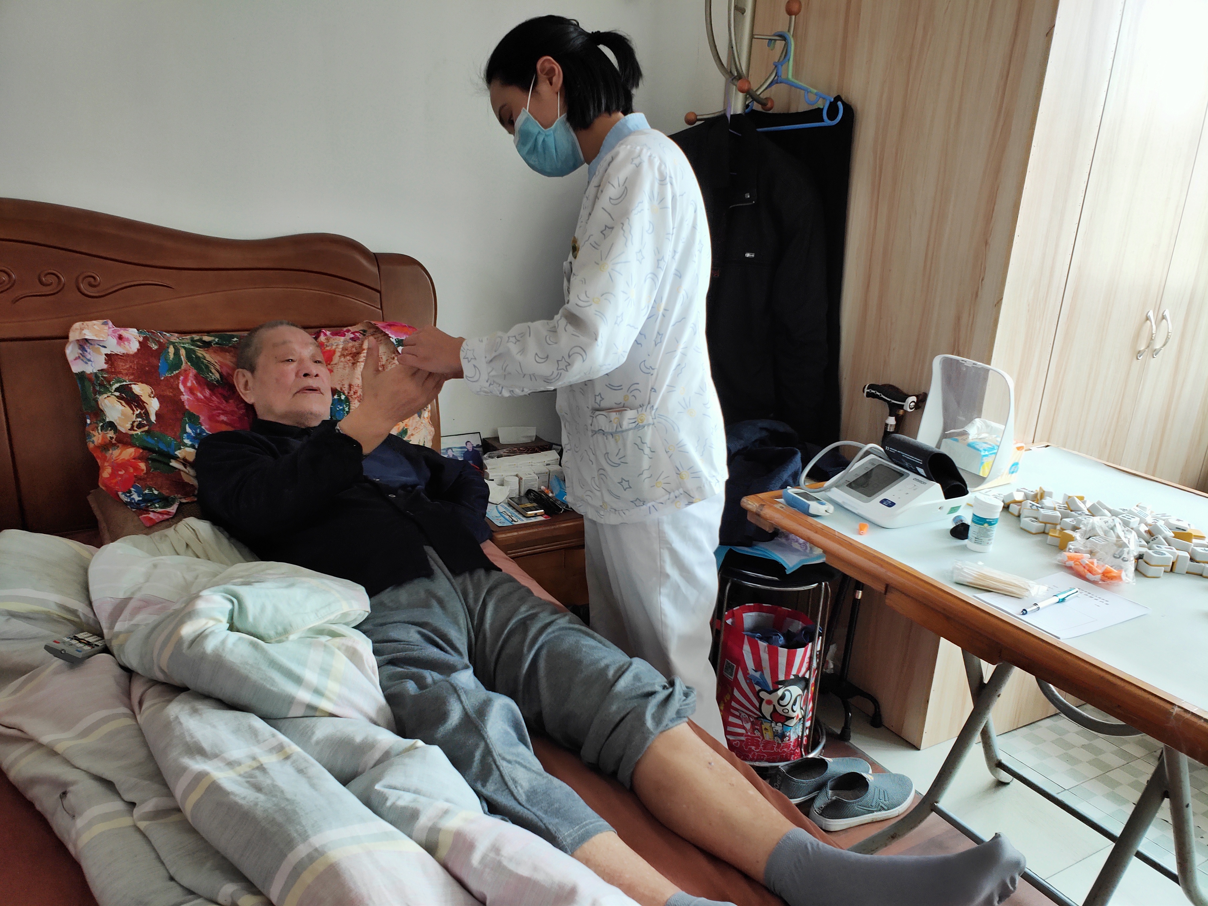 ???早早的老年之家的活動室就坐滿了人,等待著我們的到來。活動現(xiàn)場,土文珍主任和邱麗雪醫(yī)生針對村民們的常見病、慢性病,為老人們進(jìn)行初步檢查、篩查和診斷,護(hù)士為早已等候多時老人們量血壓、測血糖并耐心解答各種健康癥狀進(jìn)行相關(guān)的講解并給予飲食建議,讓他們及時了解自己的身體狀況及相關(guān)疾病的預(yù)防令老人高興的來。對于不能行走的老人,倪秀娟護(hù)士在工作人員指導(dǎo)下給予床邊的健康服務(wù)。