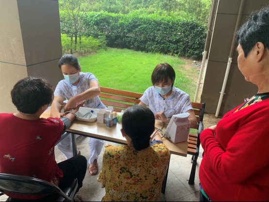 下午,“銀發(fā)守望”志愿者服務(wù)隊(duì)又前往梧田街道繼續(xù)開展義診活動(dòng),活動(dòng)現(xiàn)場(chǎng)早已有附近居民們?cè)诘却?,醫(yī)護(hù)人員一到現(xiàn)場(chǎng)便緊密鑼鼓開始為居民們測(cè)量血壓、血糖,解答居民們關(guān)心的健康問題。