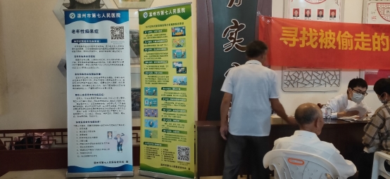?? 為了讓大眾更加了解阿爾茨海默癥,老年科銀發(fā)守望志愿者服務(wù)隊(duì)前往平陽騰蛟開展義診活動。醫(yī)護(hù)人員們?yōu)榫用衩赓M(fèi)進(jìn)行疾病宣教、老年癡呆篩查、測量血壓、血糖,并耐心細(xì)致地為居民們答疑解惑,鼓勵(lì)他們敞開心扉、樂觀面對、不再回避此類疾病。