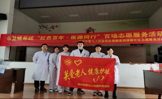 為響應(yīng)市衛(wèi)建“紅色百年·一路同行”精神,全面增強(qiáng)老年健康意識(shí),5.20上午,第七人民醫(yī)院老年科聯(lián)合臨床二黨支部赴泰順泗溪鎮(zhèn)社區(qū)進(jìn)行了義診服務(wù)活動(dòng)。