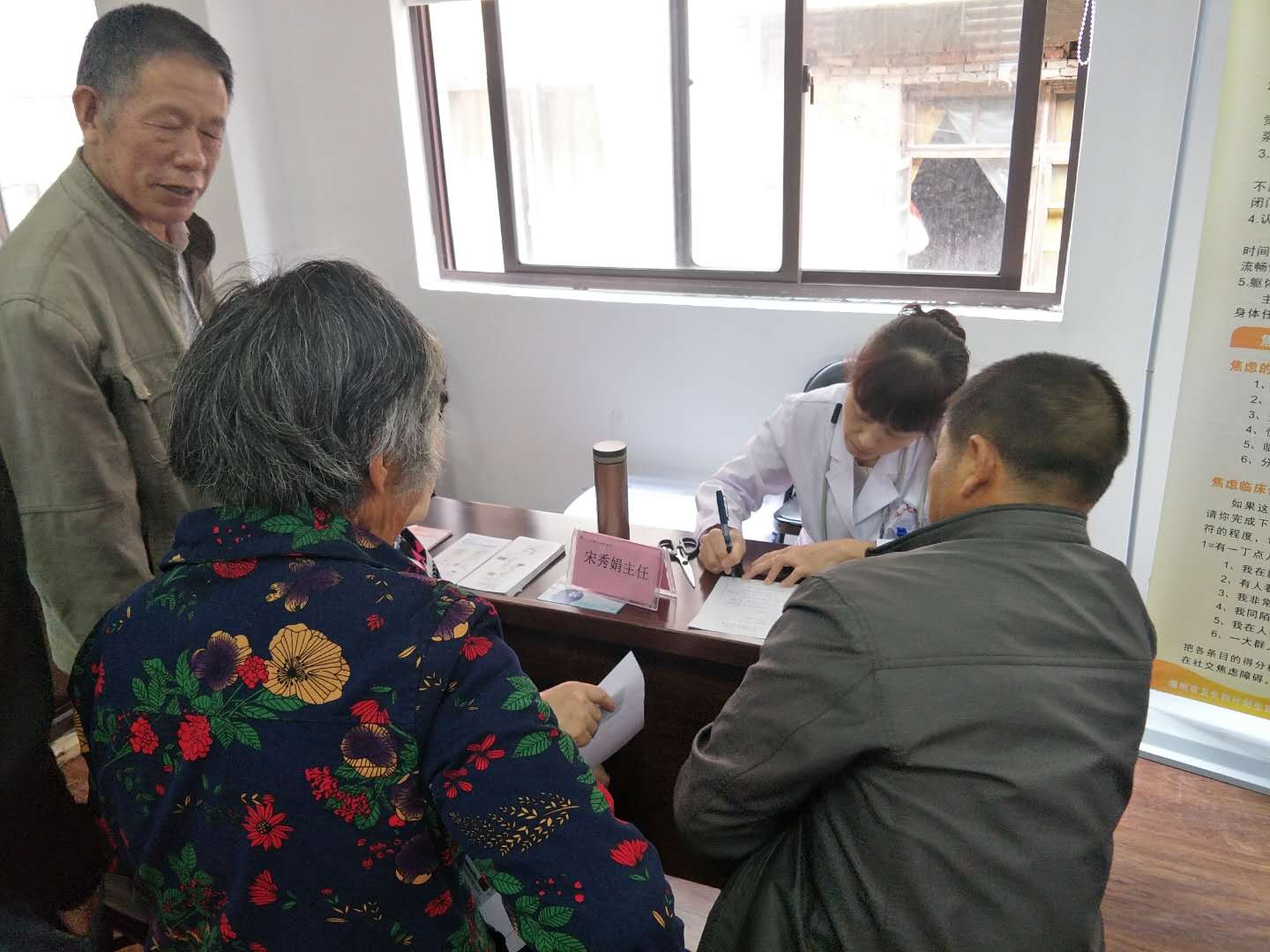 ??? 下午14:00,義診準(zhǔn)時(shí)開始。一眨眼,宋秀娟主任邊上有序的圍坐著一批老人,坐在最前邊的一位阿婆,言語(yǔ)迫切,語(yǔ)講述起自己的故事:幾年前,她發(fā)生了車禍,身上遺留下一道深刻的疤痕,一直是自己的心上結(jié),每晚入睡前會(huì)想起車禍的現(xiàn)場(chǎng),總是讓她心上一緊,悶得發(fā)慌,要持續(xù)半小時(shí)后才能緩解。宋主任給予簡(jiǎn)單的篩查后,建議將注意力轉(zhuǎn)移,增加自己的朋友圈和娛樂圈,學(xué)會(huì)睡前的一些的放松指導(dǎo),并留下聯(lián)系方式,幫助其做好后期的延續(xù)工作。其他老年人也紛紛表示,老年人應(yīng)該要保證自己的尊嚴(yán)和規(guī)律的生活方式。