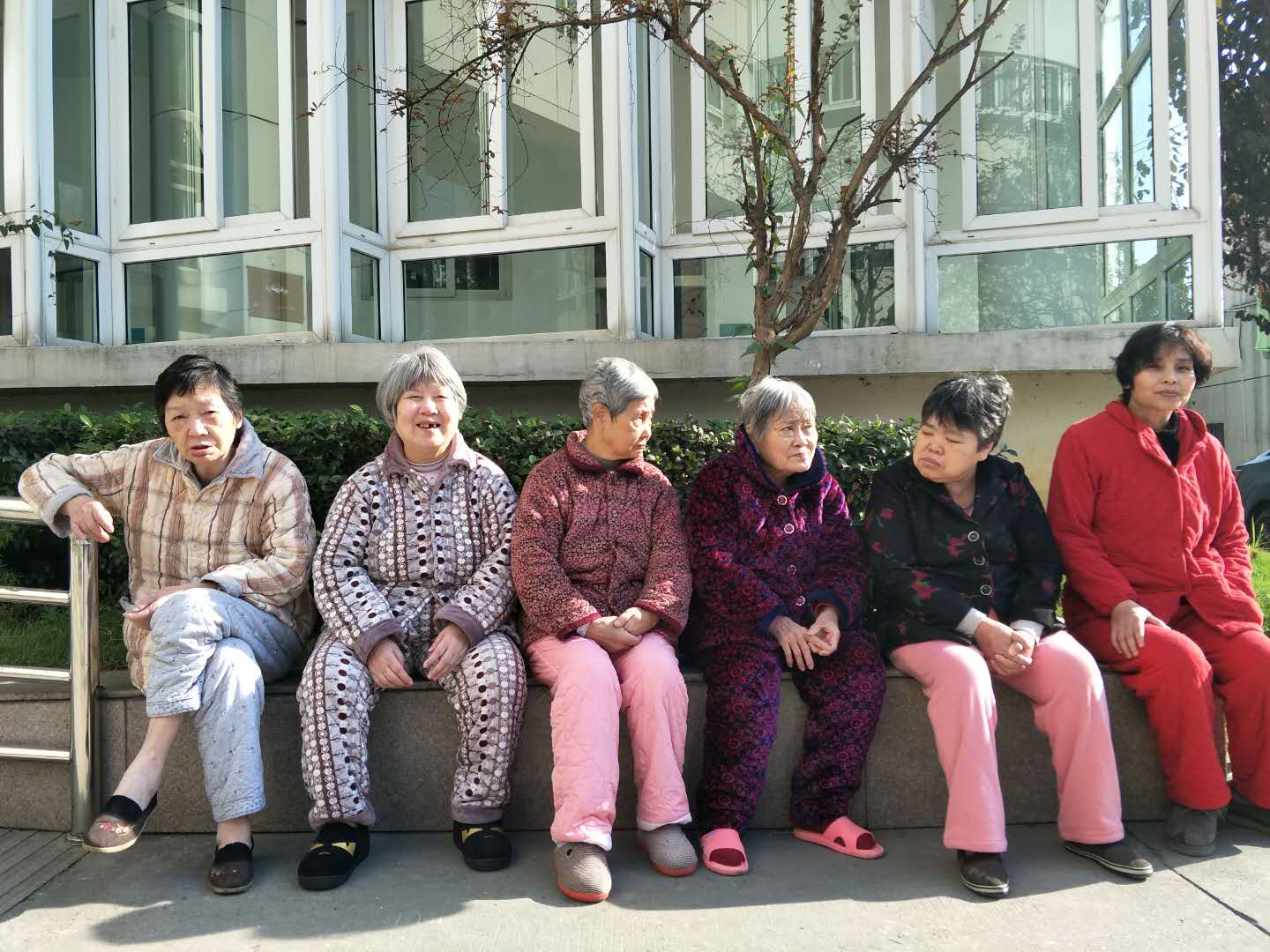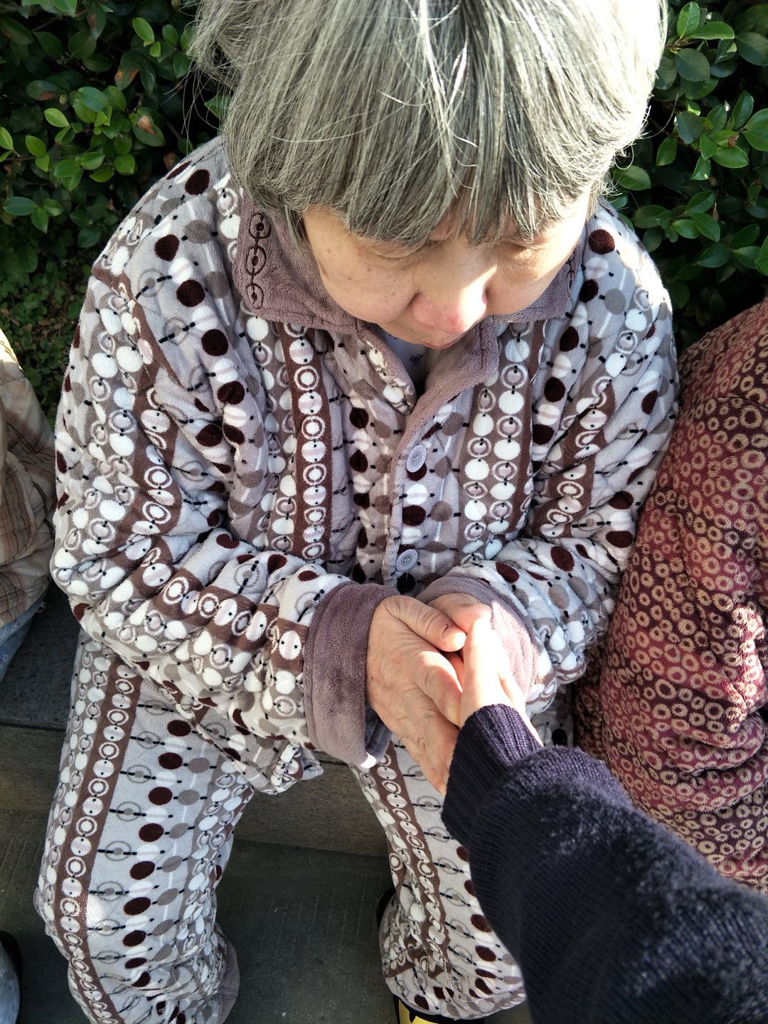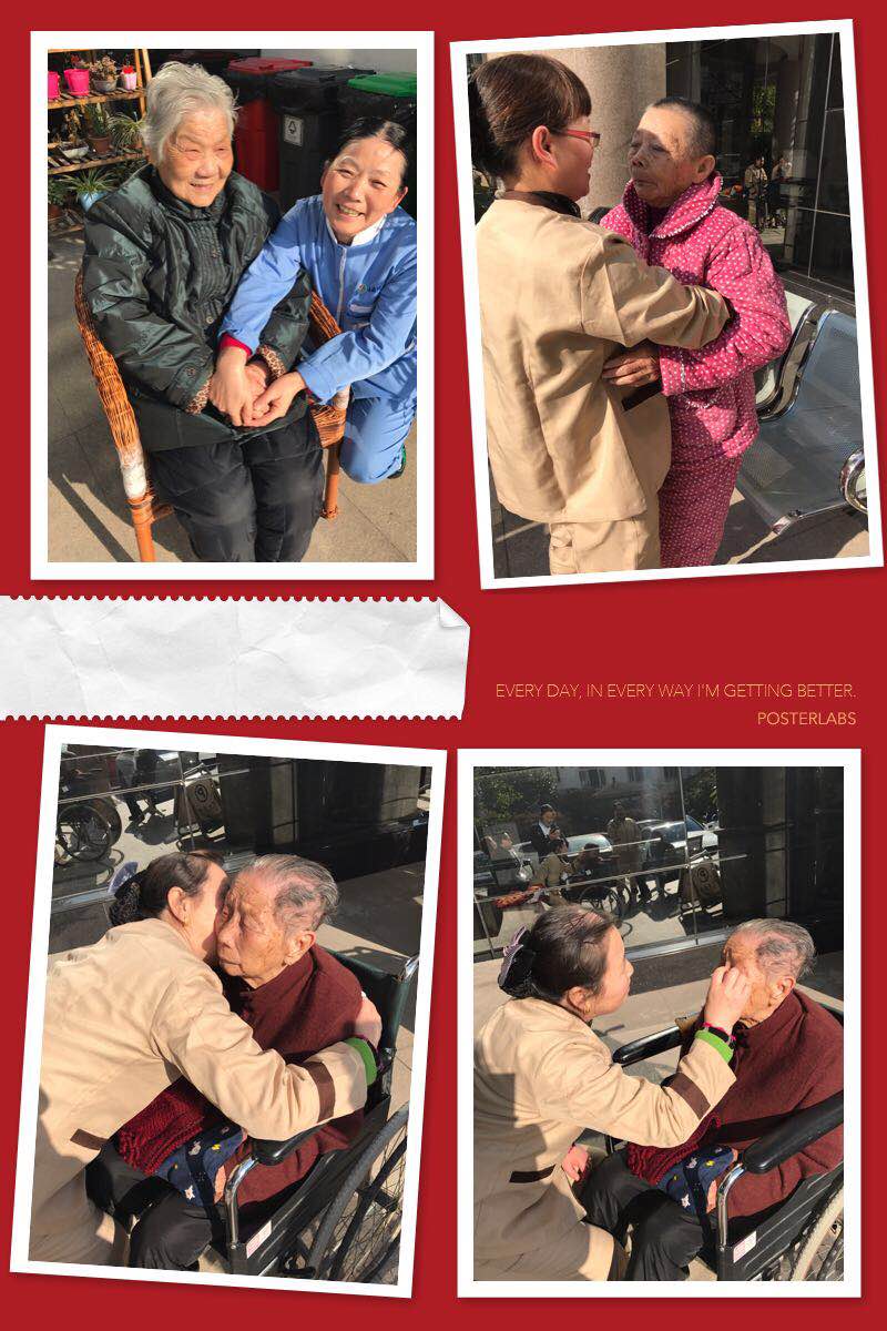 ??在金燦燦的陽(yáng)光下,這些老可愛(ài)們一個(gè)一個(gè)擠著坐著,吵吵嚷嚷,歡聲笑語(yǔ)。似乎都因?yàn)闀裉?yáng)而心情大好。護(hù)士調(diào)侃一個(gè)阿婆說(shuō):“我的手好冷!”一個(gè)阿婆直接用自己溫暖的雙手搓起護(hù)士的手來(lái)。還有陪護(hù)阿姨悉心照顧患者的樣子,在這陽(yáng)光下熠熠閃光。瞧,有的貼心的搓著手,有的抱著患者練習(xí)走路,有的在耳邊輕聲細(xì)語(yǔ),有的在溫柔的撫摸臉頰……