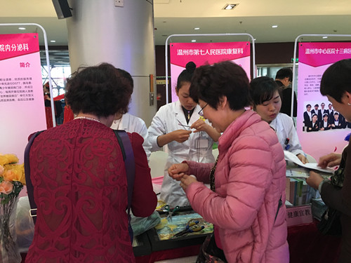 ????? 為響應(yīng)溫州市巾幗文明崗創(chuàng)建的“惠民暖心 最美服務(wù)” 主題實(shí)踐活動(dòng),我院康復(fù)科于3月8日早上8:30在溫州市婦女兒童活動(dòng)中心一樓開展了慶祝國(guó)際婦女節(jié)和關(guān)注精神健康的主題宣教的相應(yīng)活動(dòng)。