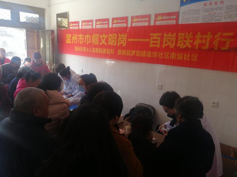 ???? ?2月13日上午,由溫州市第七人民醫(yī)院攜手泰順縣羅陽(yáng)鎮(zhèn)南垟社區(qū)南城社區(qū)組織的義診活動(dòng)如期在社區(qū)開展。根據(jù)市“巾幗文明崗”崗村結(jié)對(duì)活動(dòng)的要求,同時(shí)結(jié)合我院工作實(shí)際,我院康復(fù)科聯(lián)合社區(qū)居委會(huì)為社區(qū)內(nèi)孤寡老人及困難戶開展了內(nèi)科義診、中醫(yī)針灸理療、量血壓、測(cè)血糖、精神科??葡嚓P(guān)扶助政策咨詢等愛心義診項(xiàng)目,切實(shí)幫助社區(qū)居民解決基本的身體檢查。