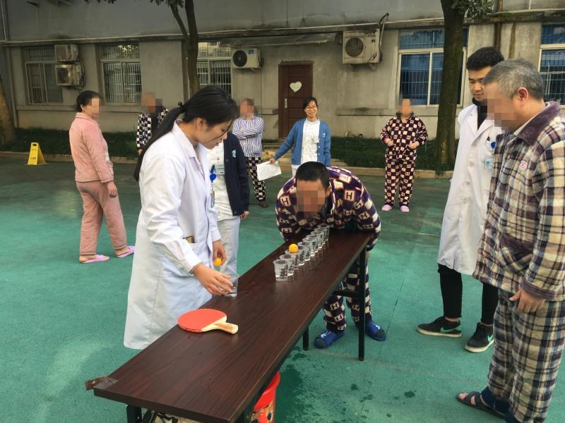 本次運動會采取團體接力,計時賽形式,以病區(qū)為單位分組,每組6人,游戲以關卡形式包括5個項目,分別包括運乒乓球,水上吹乒乓球,打紙板,跳繩和擠氣球,以抽簽決定比賽順序。