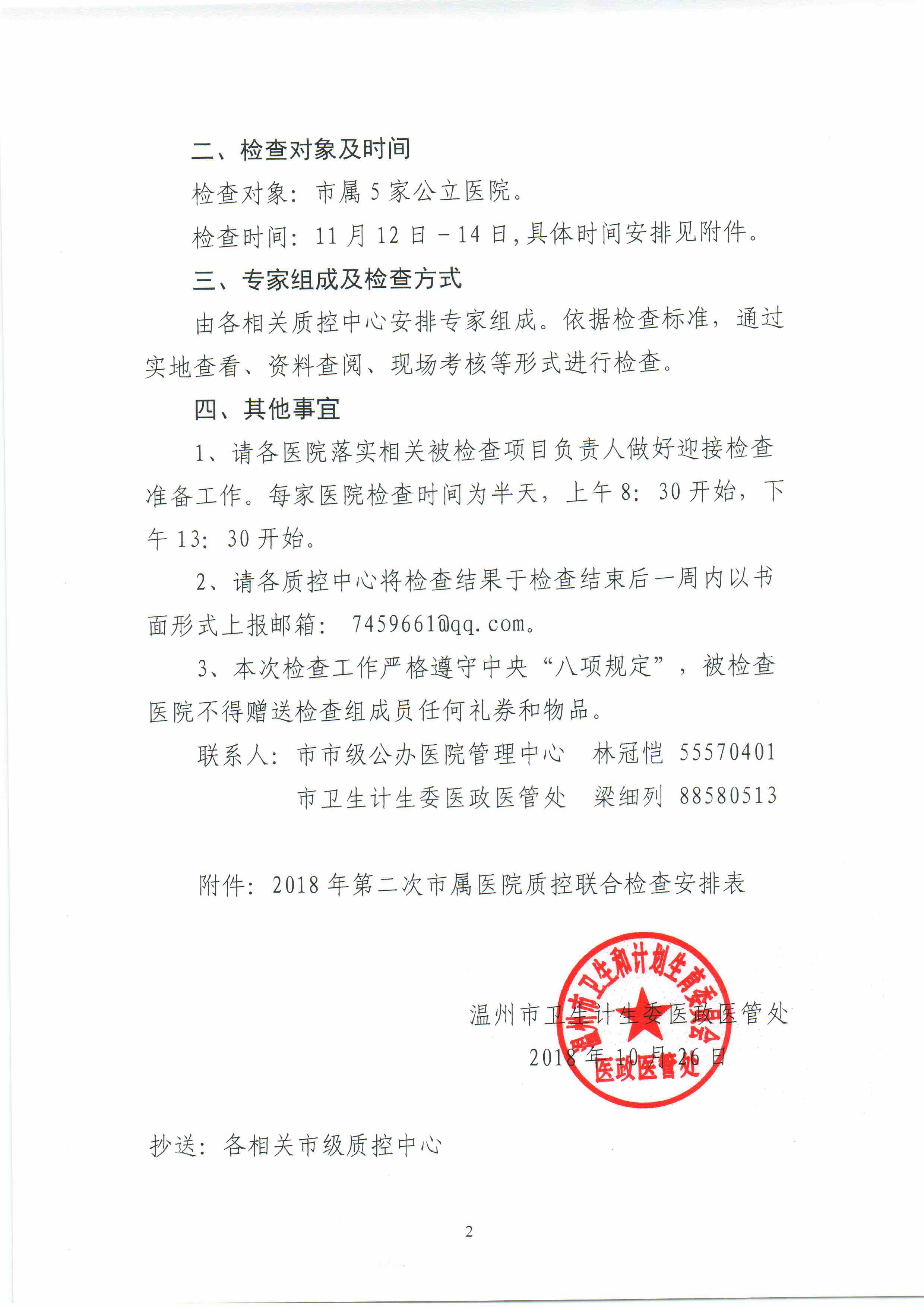 關(guān)于開展2018年第二次市屬醫(yī)院質(zhì)控聯(lián)合檢查的通知