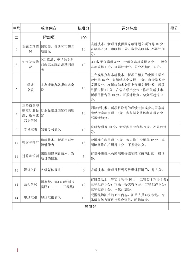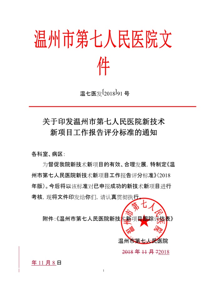 關(guān)于印發(fā)溫州市第七人民醫(yī)院新技術(shù)新項目工作報告評分標(biāo)準(zhǔn)的通知